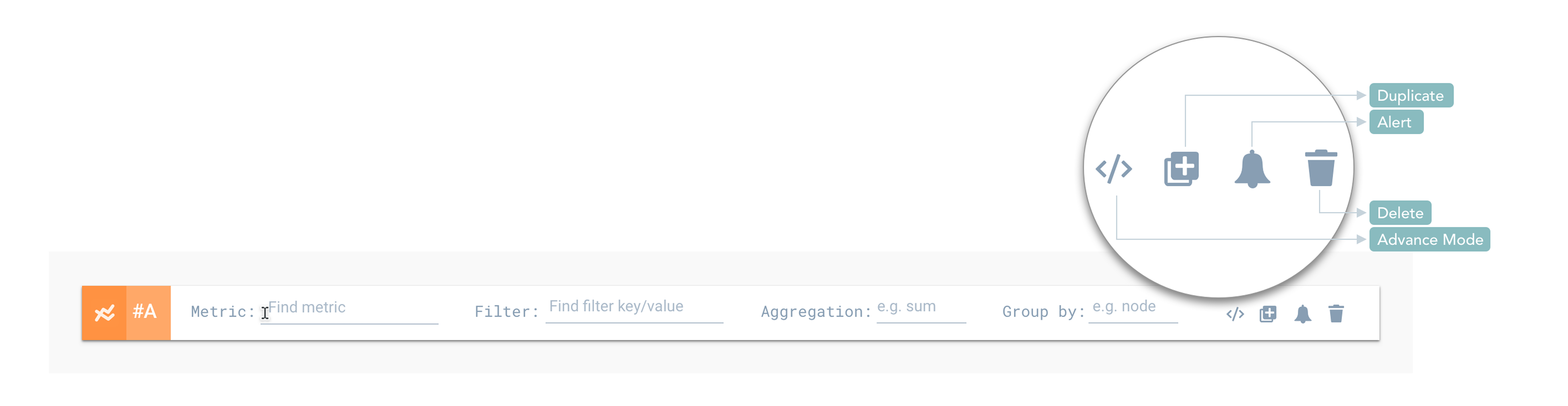 Ability to toggle between basic and advance modes for query writing catering to novice and expert users. By understanding the semantics of the query language and observing how users grouped data, the simple mode breaks down a query into four broad categories: Metric, Filter, Aggregation, Group By.